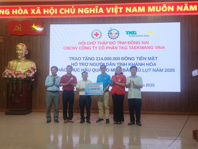 Hội Chữ thập đỏ tỉnh Đồng Nai và BCH Công đoàn cơ sở Công ty Cổ phần TKG Taekwang Vina đã trao 214 suất quà, mỗi suất trị giá 1 triệu đồng bằng tiền mặt, với tổng kinh phí 214 triệu đồng (nguồn kinh phí do CBCNV Công ty trích góp tài trợ). Các suất quà được trao tận tay cho những hộ dân bị ảnh hưởng nặng nề bởi mưa bão, lũ lụt kéo dài trong thời gian qua, gây thiệt hại lớn về nhà cửa, tài sản và sinh kế.