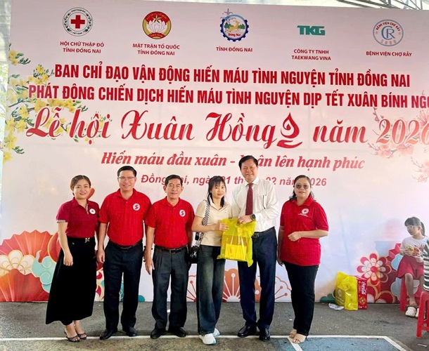 Ngày 01/02/2026, Hội Chữ thập đỏ tỉnh Đồng Nai đã tổ chức Lễ hội Xuân hồng năm 2026, thu hút sự tham gia đông đảo của cán bộ, đoàn viên, thanh niên và người lao động trên địa bàn tỉnh. Trong đó, lực lượng công nhân Công ty Cổ Phần TKG TaeKwang Vina là lực lượng tham gia chủ yếu, thể hiện tinh thần trách nhiệm xã hội và nghĩa cử cao đẹp vì sức khỏe cộng đồng.