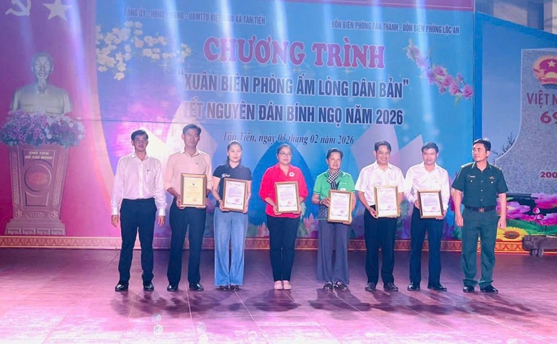 Thực hiện Kế hoạch của Trung ương Hội CTĐ Việt Nam; của Tỉnh ủy, UBND, UB MTTQ Việt Nam tỉnh về việc chăm lo hỗ trợ người dân còn nhiều khó khăn trong cuộc sống dịp Tết Nguyên đán Xuân Bính Ngọ năm 2026. Ngày 03/02/2026, tại Trường TH – THCS Lộc An xã Tân Tiến. Cấp ủy, chính quyền địa phương xã Tân Tiến và Đồn Biên phòng Tân Thành, Đồn Biên phòng Lộc An tổ chức Chương trình “Xuân Biên phòng - ấm lòng dân bản” Tết Nguyên đán Xuân Bính Ngọ năm 2026, nhằm chăm lo các gia đình chính sách, các hộ dân nghèo ở khu vực biên giới, nhân dân xã Tân Tiến vui Xuân, đón Tết thể hiện truyền thống, đạo lý tốt đẹp của dân tộc góp phần nâng cao đời sống vật chất và tinh thần của nhân dân trên địa bàn, không để ai bị bỏ lại phía sau. Tham dự Chương trình có: Lãnh đạo Ủy ban MTTQ Việt Nam tỉnh, Lãnh đạo Bộ Tư lệnh Bộ đội Biên phòng, Lãnh đạo Ban Tuyên giáo – Dân vận Tỉnh ủy, Bộ CHQS tỉnh, Ban Chỉ huy bộ đội biên phòng, Lãnh đạo Hội Chữ thập đỏ tỉnh, Lãnh đạo Cấp ủy, chính quyền xã Tân Tiến và các đơn vị, cá nhân nhà hảo tâm.Tại đây, trong Chương trình “Xuân Biên phòng - ấm lòng dân bản” Tết Nguyên đán Xuân Bính Ngọ năm 2026, Hội CTĐ tỉnh đã vận động Ban Trị sự thất phủ Cổ miếu Biên Hòa và các nhà hảo tâm đóng góp ủng hộ 500 phần quà nhu yếu phẩm để cùng thực hiện Gian hàng 0 đồng tặng quà cho khoảng 500 lượt hộ dân khu vực biên giới, gia đình chính sách, người dân trên địa bàn xã Tân Tiến, với tổng trị giá 250 triệu đồng. Tại Chương trình, đã tổ chức nhiều hoạt động vui Xuân, ẩm thực, trò chơi dân gian…giúp cho người dân có dịp vui Xuân, đón Tết cổ truyền dân tộc.